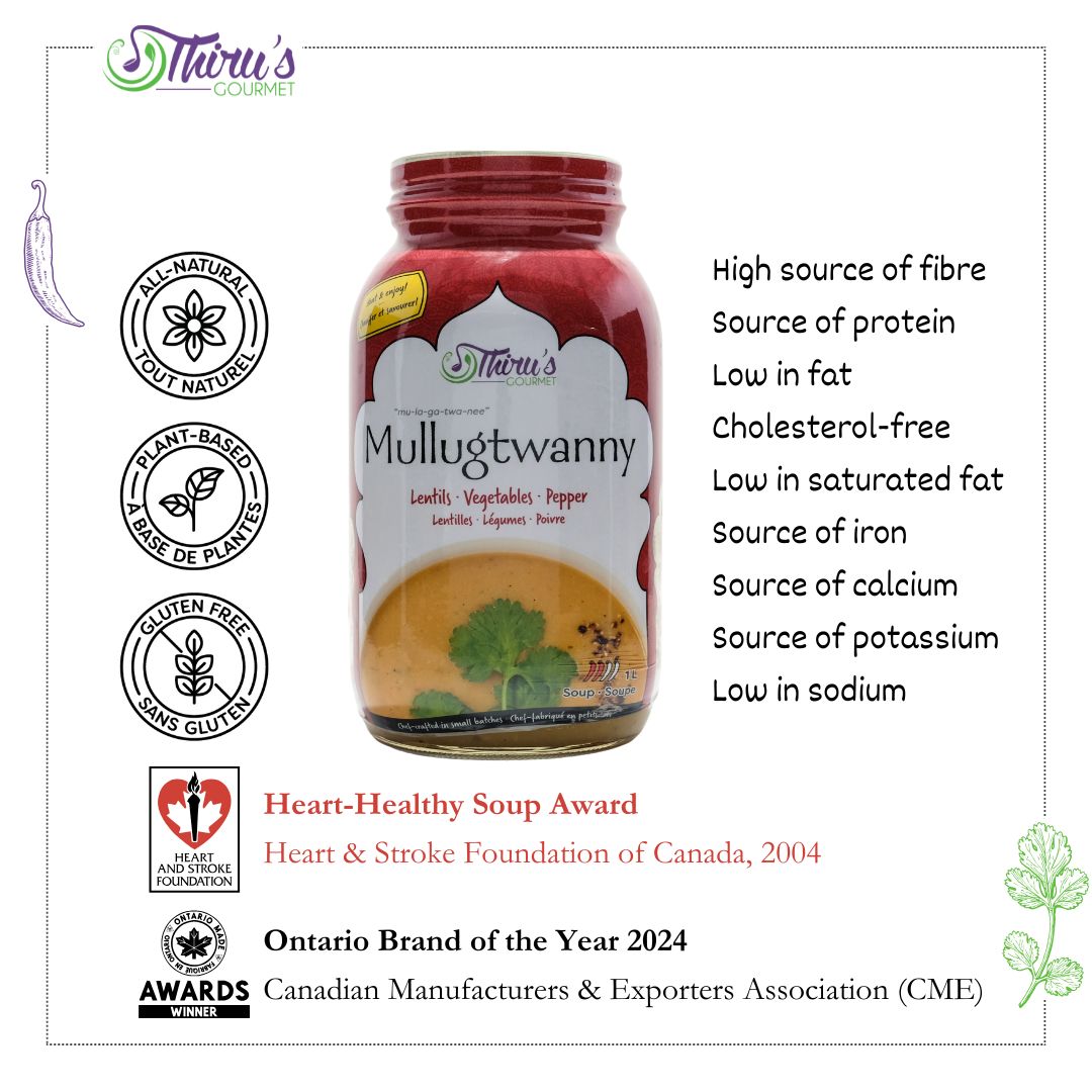 Our Mulligatawny soup is inspired by a classic South Indian recipe. The name 'Mulligatawny' comes from the Tamil words 'milagu' and 'tanni,' which together mean 'pepper water.' While the British popularized a version that included rice, apples, and chicken, our Indo-Canadian version uses Canadian lentils and fresh, local vegetables.