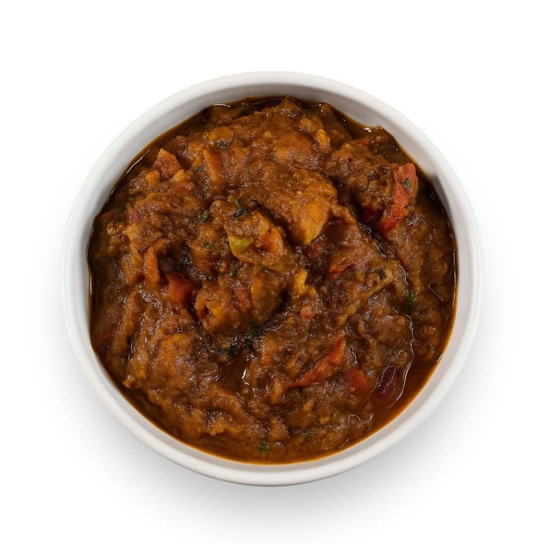 Chunks of tender spring lamb leg cooked in peppery coconut curry sauce